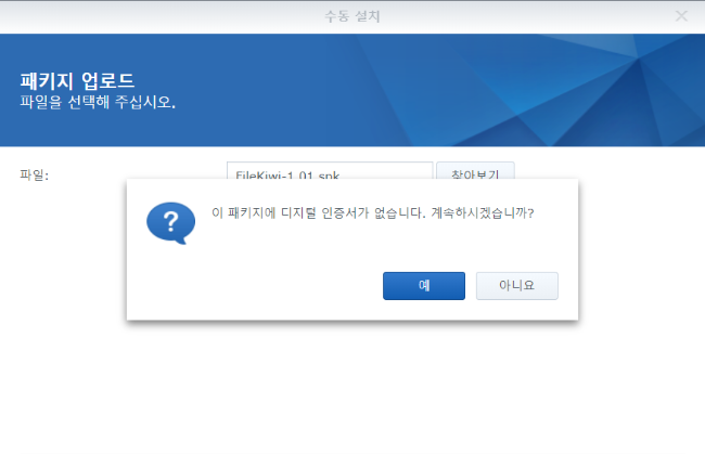 [수동설치] 버튼을 눌러서 다운받은 spk 파일을 선택하여 업로드합니다.