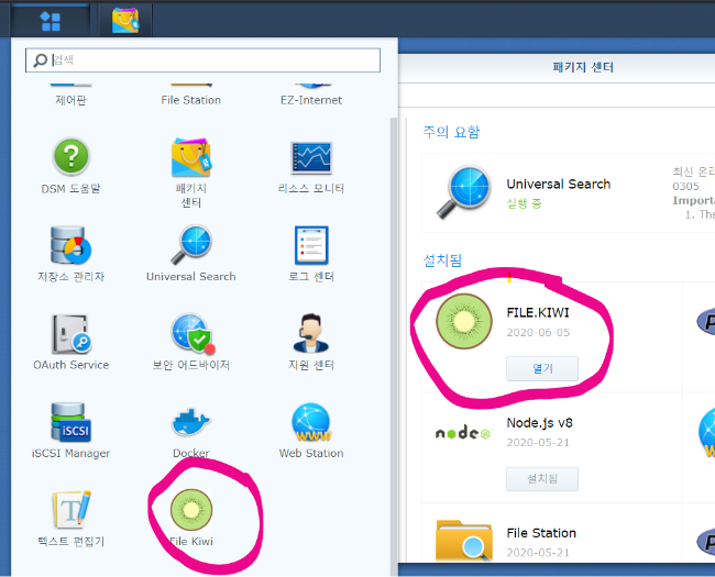 설치가 완료되면 패키지 센터에 추가됩니다. 아래와 같이 보이게 됩니다.