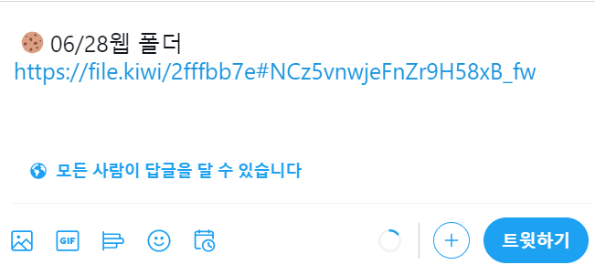 트윗하기를 하면 웹폴더 링크가 전달되고 이를 클릭하는 사람은 파일에 접근할수 있게 됩니다.