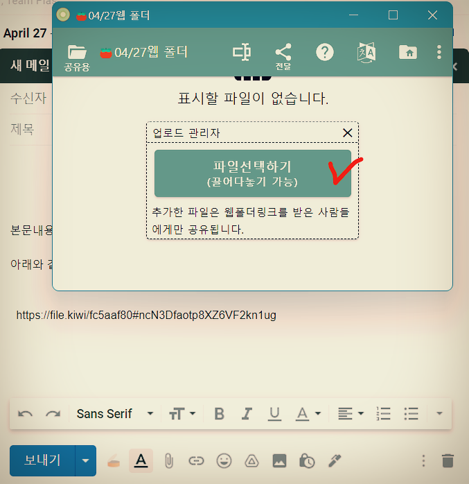 이메일 자체는 대용량 첨부기능이 없이때문에 다운로드 링크를 메일내용에 넣는 방법으로 해결하게 되는데요.