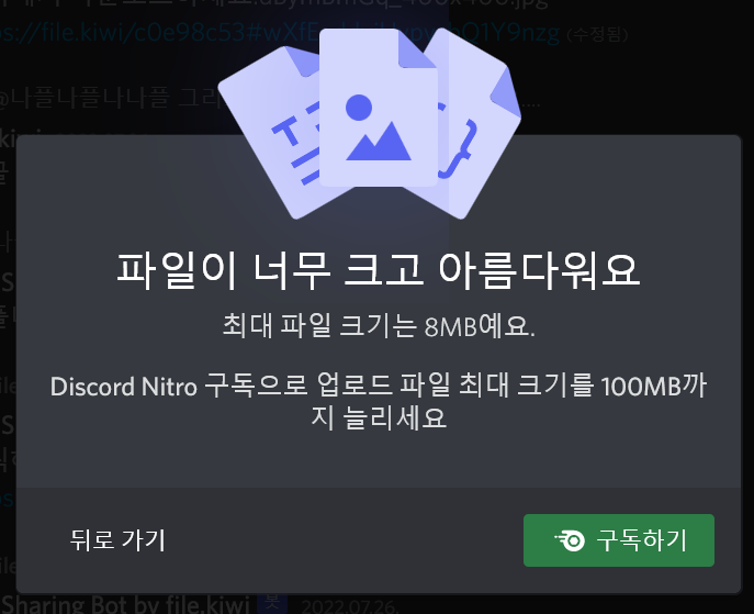 디스코드에서는 10M 파일도 크다고 거부를 하죠. 아름답다는 핑계와 함께요.