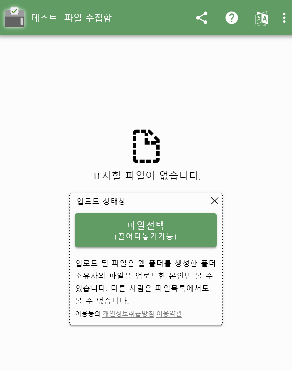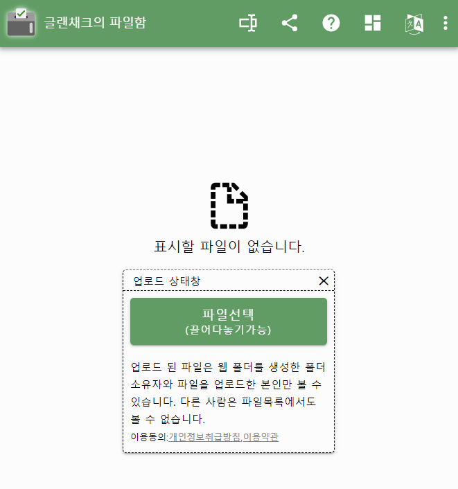 수집함 주인이 똑같은 주소로 접속하면 업로드된 파일들을 모두 볼수 있습니다.